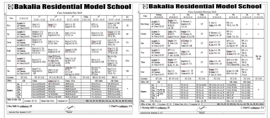 HW=Home Work, H.Writing=Hand Writing, RP=Revision Period